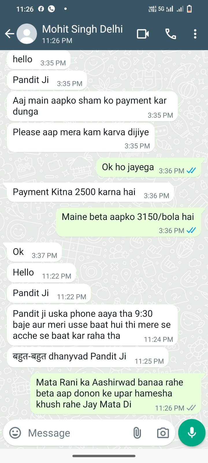 I am thankful to Astrologer Prem Joshi Ji that has helped me to stop love disputes. I am blessed that he helped me with his remedies. I am able to stop my breakup and build a good relationship with my lover.